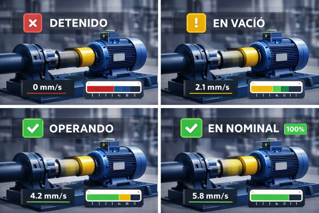 Frecuencia de Vibración: crucial para diagnosticar fallos como desequilibrios (bajas frecuencias) o problemas en rodamientos (altas frecuencias